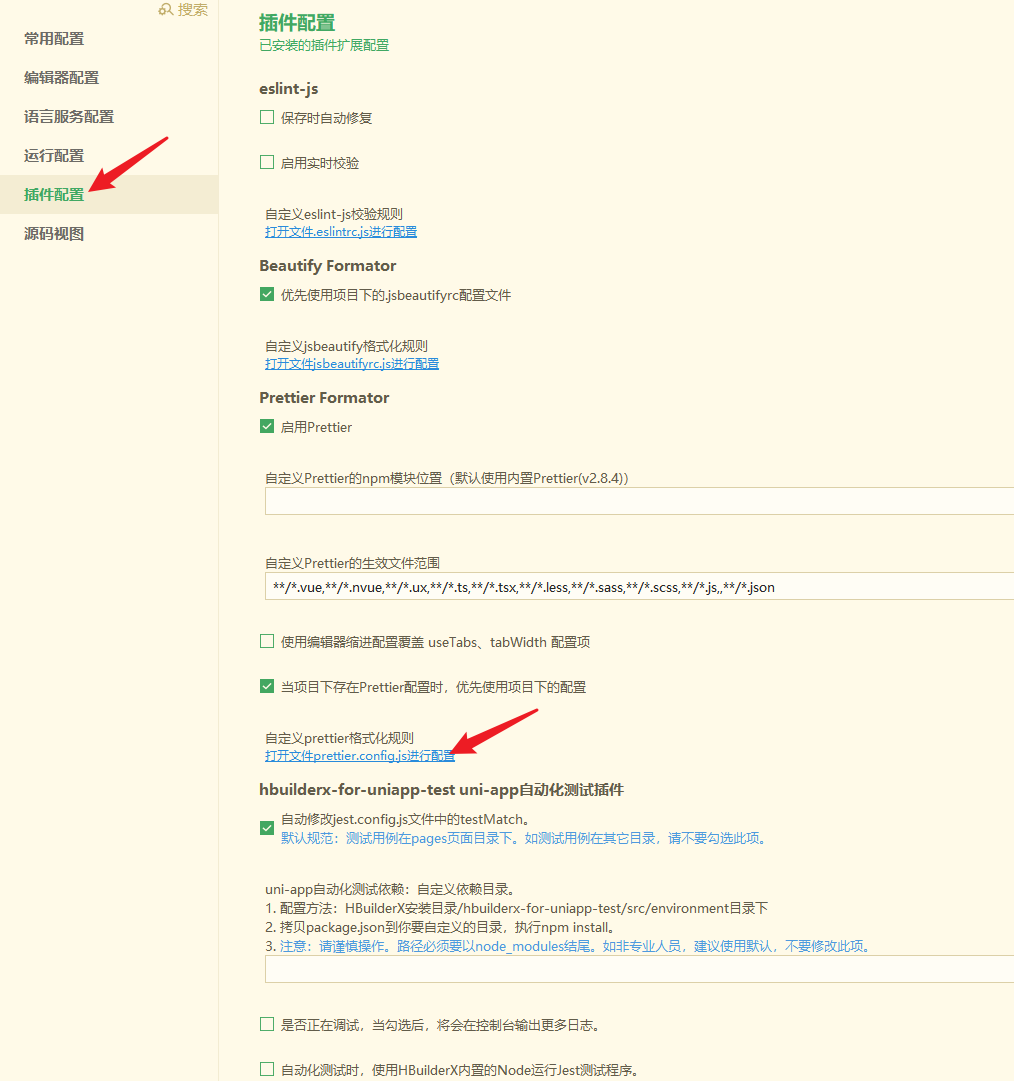 本项目使用 Prettier (opens new window) 作为代码格式化工具,以下是在 HBuilderX 中的配置步骤。